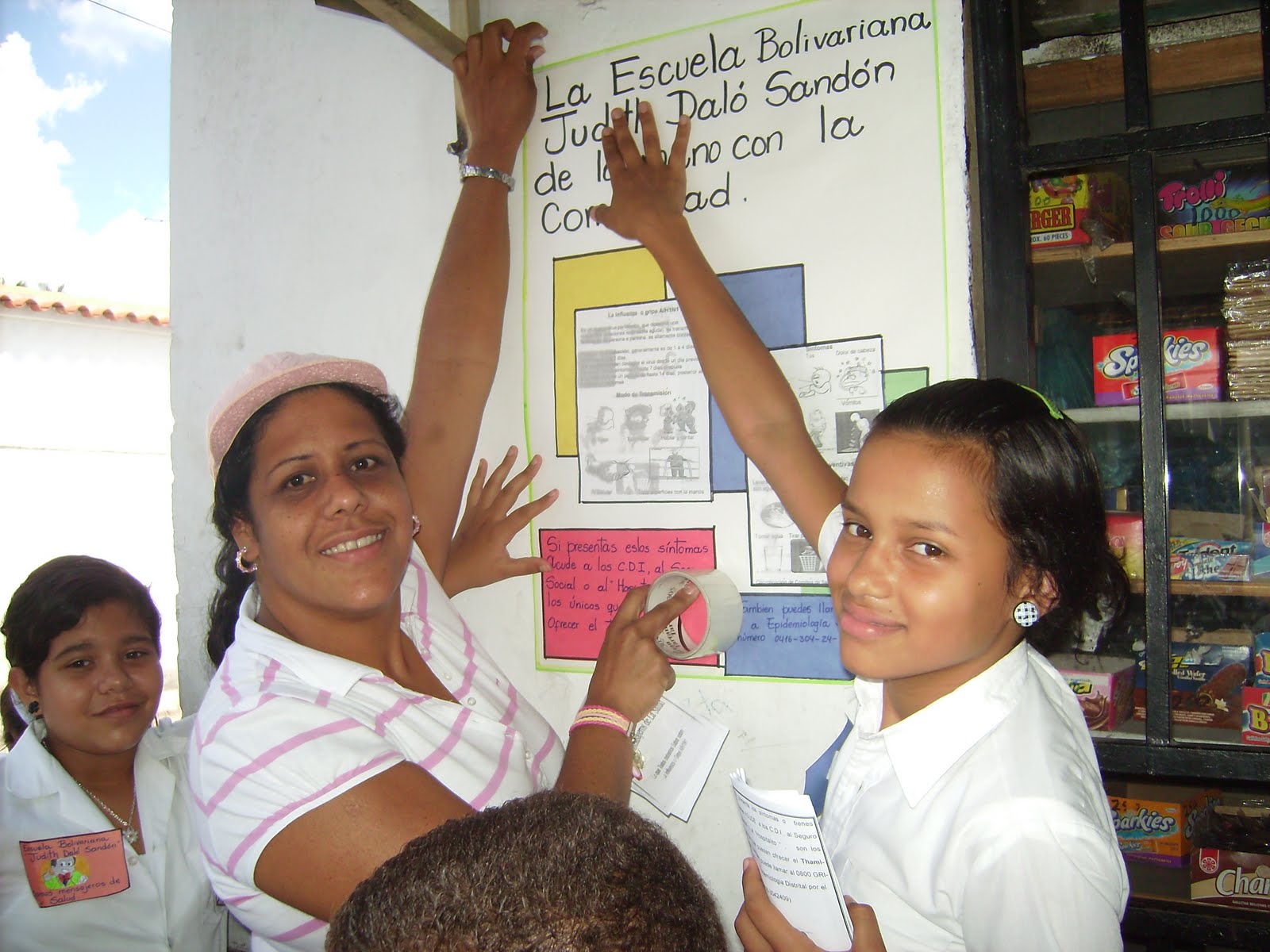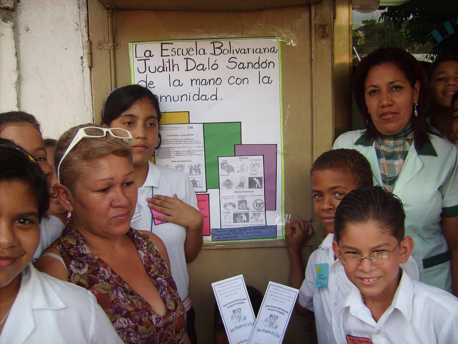 En nuestra Escuela... Nos hemos propuesto entre otras cosas , PROYECTAR lo que hacemos y vivimos a diario en la comunidad donde nos encontramos, después de todo, la mayor parte de los niños y niñas, vive en esta comunidad. Durante los meses de noviembre y diciembre , estuvimos trabajando sobre lo que representaba una pandemia mundial la gripe H1N1 y no podíamos quedarnos con todas las cosas que aprendimos, así que con el apoyo de todos , especialmente de nuestra Directora , Prof. Esperanza Gónzalez, salimos a las calles, visitamos casa`por casa, bodegas, peluquerías, ventas de repuestos... para llevar UN MENSAJE DE SALUD, se entregaron trípticos, se pagaron afiches, las personas nos recibieron con cariño , receptividad y agradecieron a la Institución el organizar este tipo de campañas. Les cuento ... los estudiantes conjuntamente con sus DOCENTES, que debo resaltar es EQUIPO DE LUJO, ya, desde semanas atrás venían trabajando en sus aulas sobre este tópico, elaboraron afiches, carteles, carteleras , trabajos de investigación.... ESE TRABAJO MARAVILLOSO E IMPORTANTE no podía quedarse encerrado dentro de las paredes de la escuela, no , es que LA ESCUELA, no solo debe educar a sus estudiantes , debe también ser, educadora de su comunidad, acompañarla darse la mano y unir fuerzas para optimizar logros... solos nos cansamos ... juntos nos ayudamos!!!.